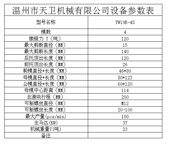 Current location:Home  / Products  / Four die four punch cold heading machine  / └ TW19B(M12) / TW19B-4S fully automatic multi station cold heading machine